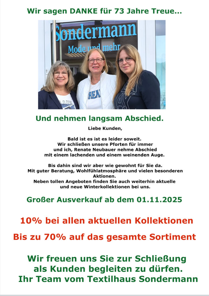 70 Jahre Erfolg mit aktueller Mode und ausgeprägtem Kundenservice.